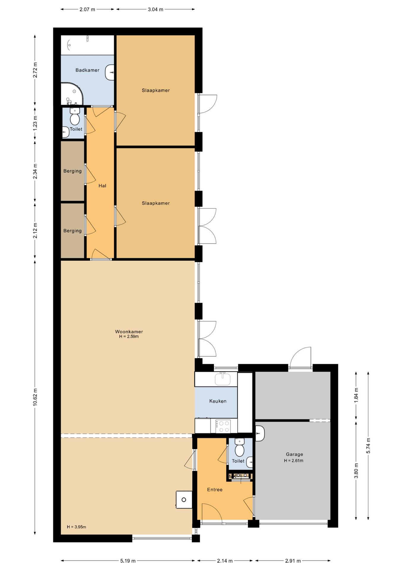* Kaveloppervlak: 278 m2 eigen grond