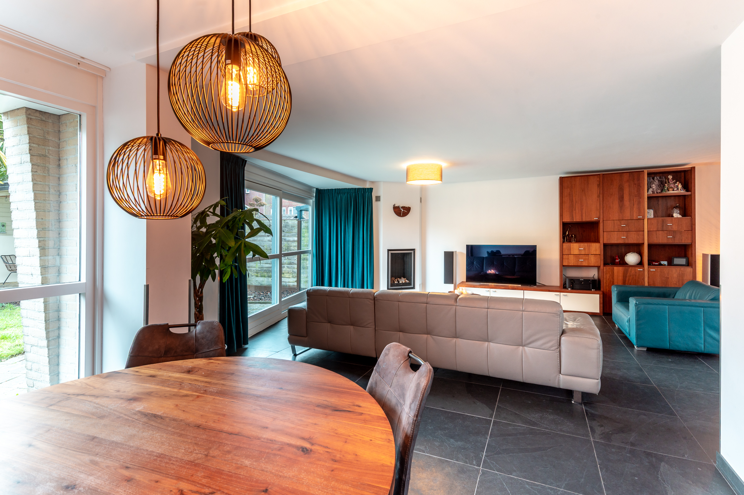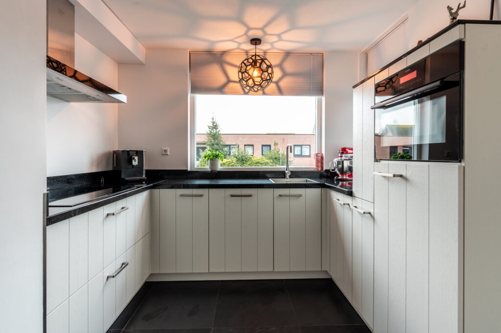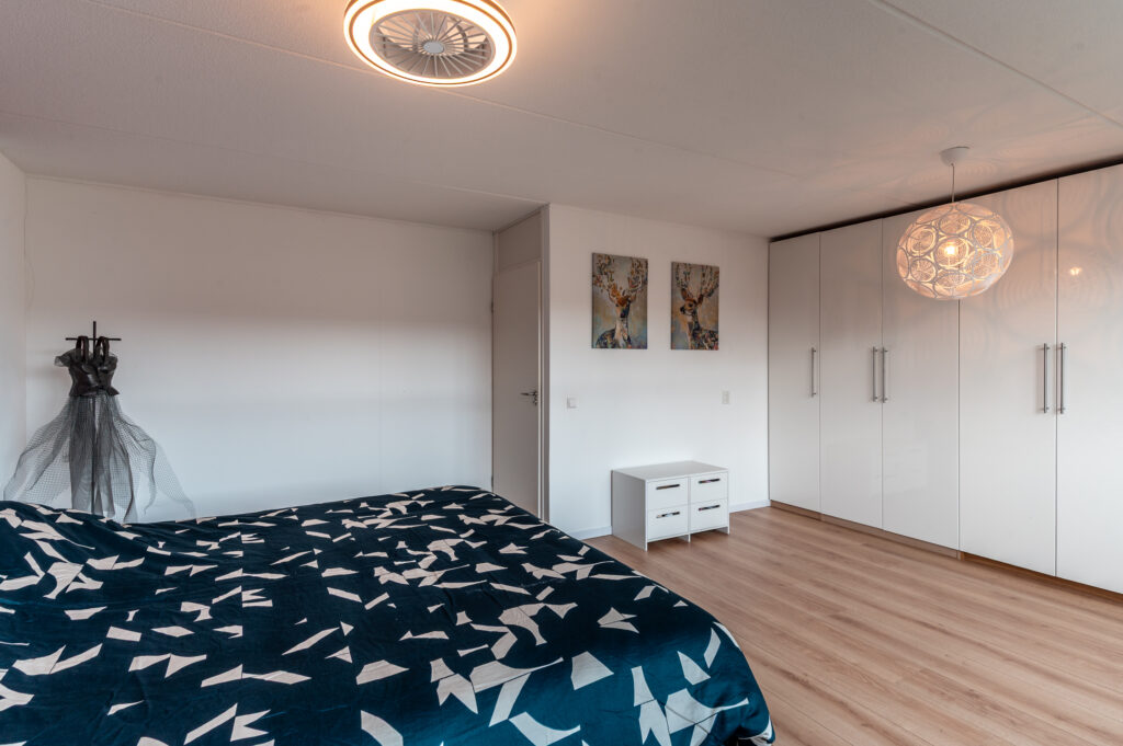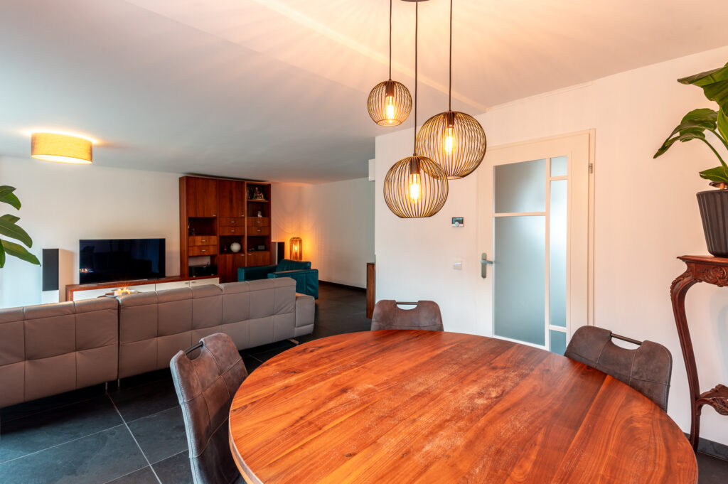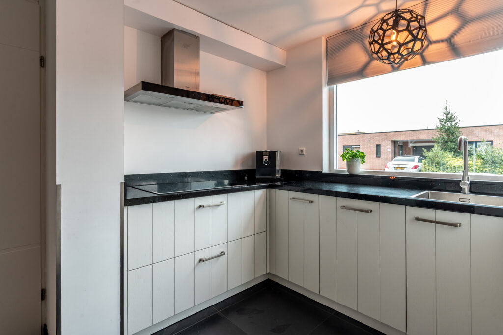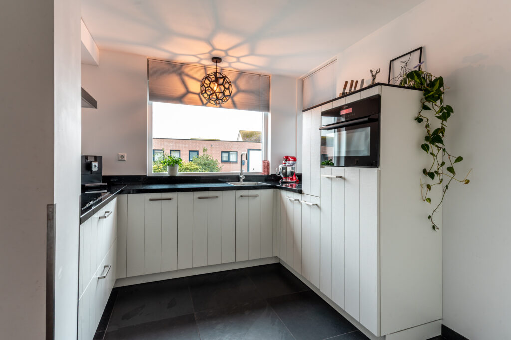 De begane grond wordt gekenmerkt door een ruime en lichte woon-/eetkamer waar sfeer en functionaliteit samenkomen. De gashaard zorgt voor extra warmte en gezelligheid, terwijl de schuifpui een mooie verbinding vormt met de achtertuin. De open, moderne keuken sluit hier naadloos op aan en maakt deze leefruimte compleet.