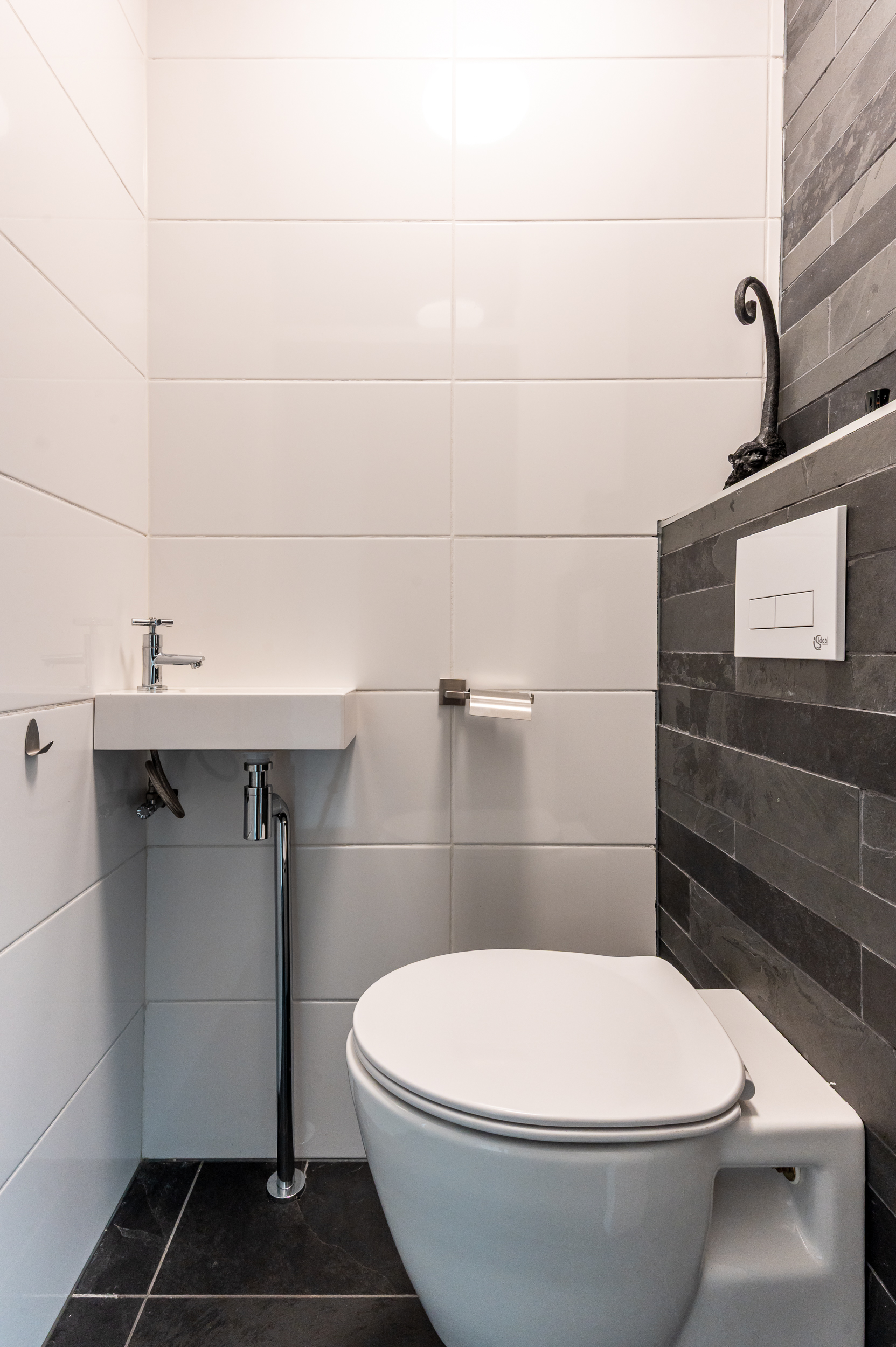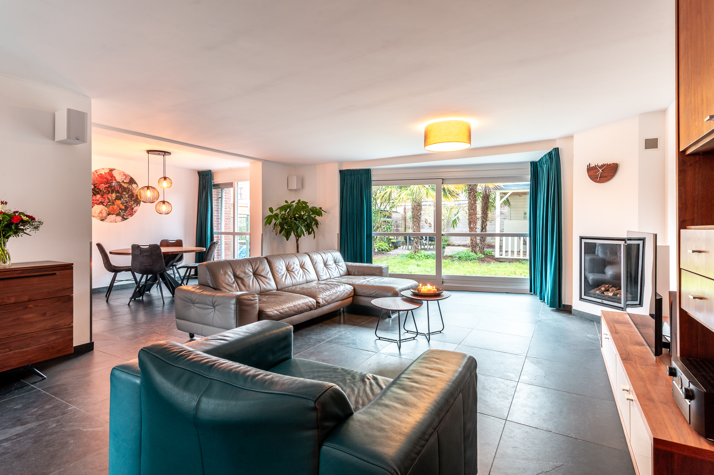 De begane grond is voorzien van een natuurstenen vloer met vloerverwarming.