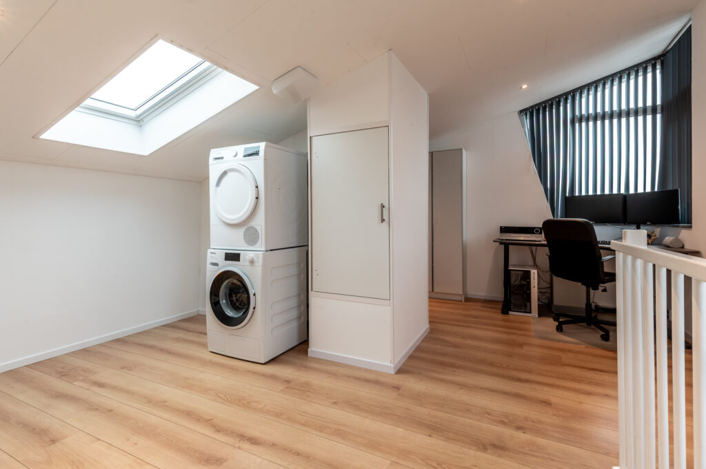 Slaapkamer 3 (ca. 22 m²) met opstelling CV-ketel, opstelling wassen-/drogen, losse kasten, dakraam, slaapkamer 4 (ca. 17 m²).