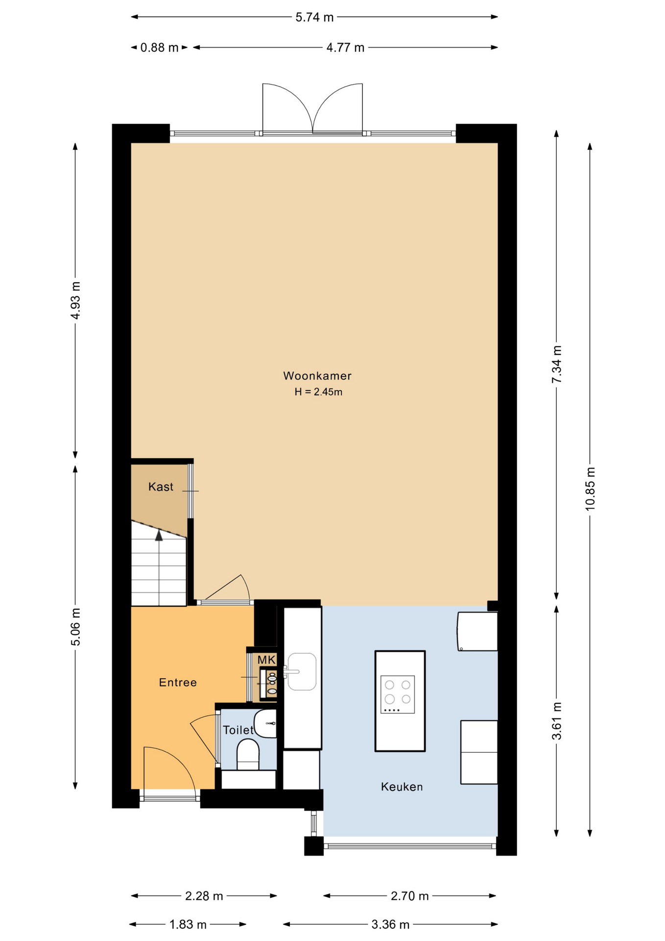 Entree/hal met de toiletruimte (2012), meterkast, garderobe, trapopgang naar de verdieping en toegang tot de woonkamer. Een heerlijke lichte woonkamer van maar liefst 5.75 m. breed met grote raampartijen, een praktische trapkast en middels dubbele openslaande deuren toegang tot de fraai aangelegde tuin. Aan de voorzijde bevindt zich de nette inbouwkeuken in dubbele opstelling met kookeiland, welke voorzien is van de volgende apparatuur; oven (2020), magnetron, vaatwasser (2020), 4-pits inductiekookplaat (2024), afzuigkap en een losse SMEG koel-vriescombinatie (ter overname). Vanuit de keuken kijkt u heerlijk vrij weg over een groen plantsoen en speelvoorzieningen! Ruime opstelmogelijkheden voor een grote eettafel waar u heerlijk met uw familie kunt dineren. De begane grond is voorzien van een laminaatvloer.