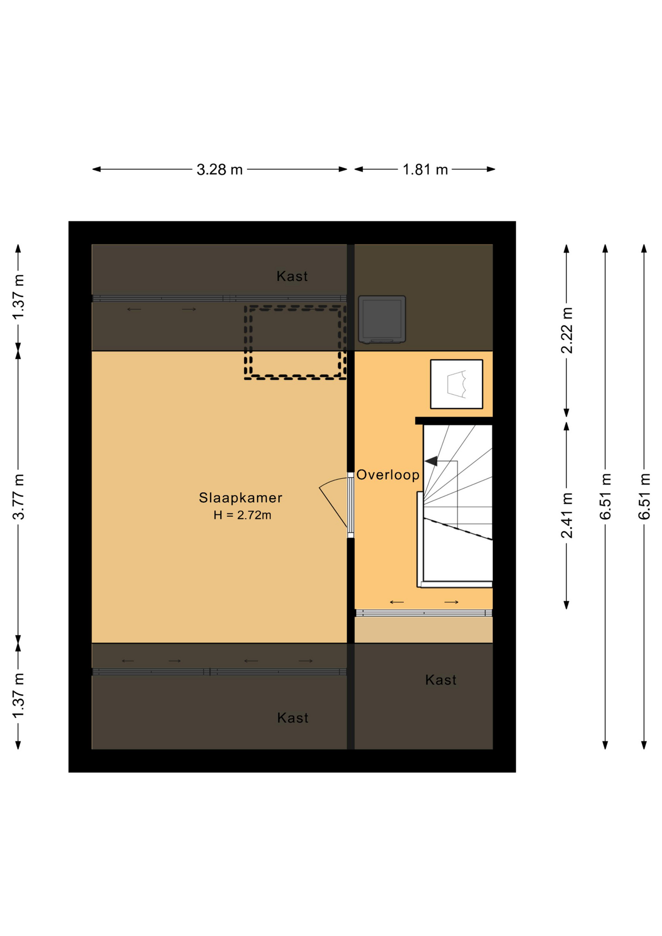 Overloop met de opstelplaats van de cv-ketel (2013), de wasmachine/droger aansluiting en veel praktische bergruimte. Toegang tot de ruime 4e slaapkamer (ca. 12 m2) met een dakraam. De verdieping is voorzien van een laminaatvloer.