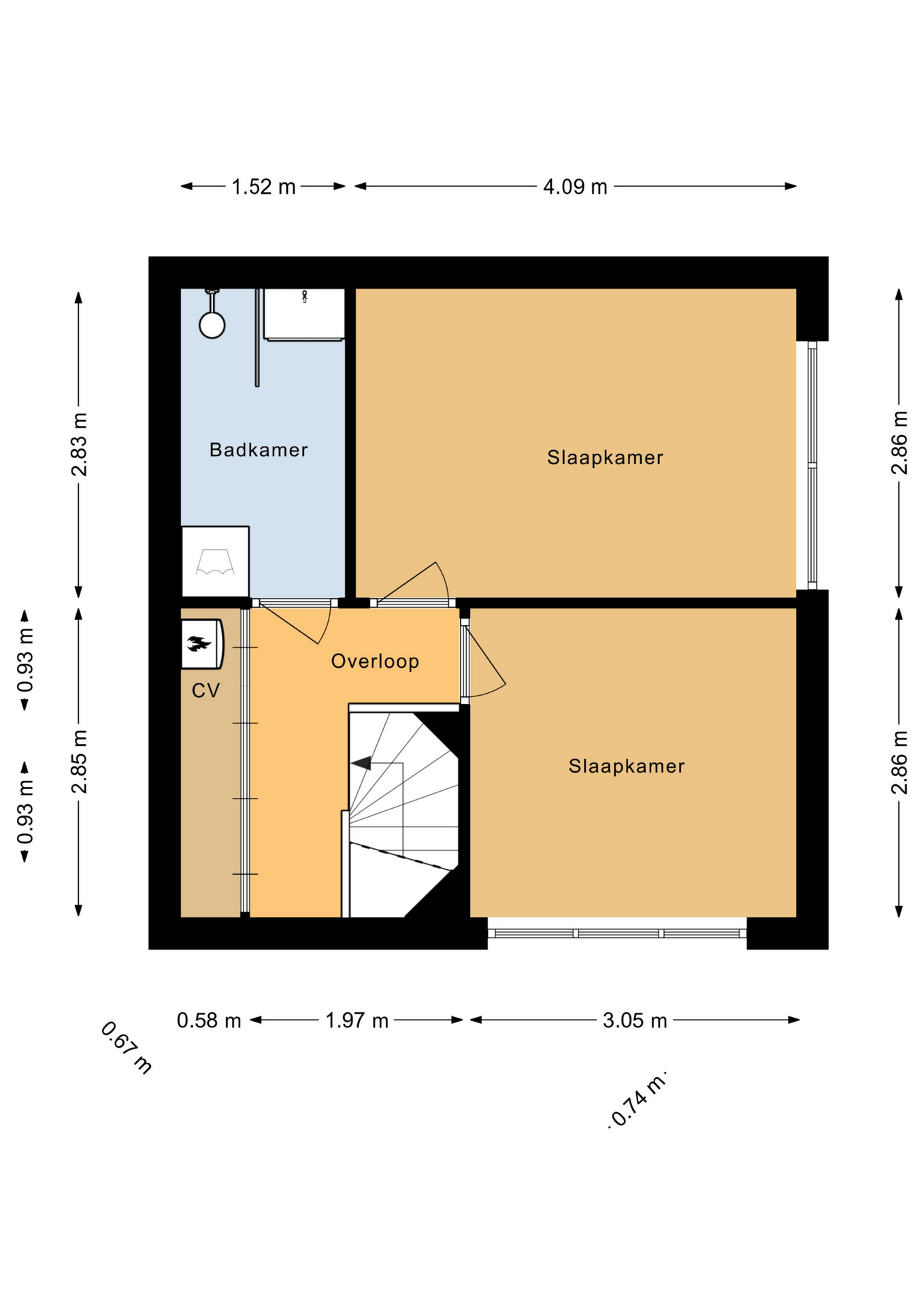 Overloop met de opstelplaats van de cv-ketel (2021), de mechanische ventilatie box en veel praktische bergruimte in de op maat gemaakte kastenwand. Toegang tot 2 ruime slaapkamers (ca. 12 en 9 m2). De overloop is voorzien van een airco (2020 | warmte/koelen) die de beide slaapkamers uitstekend koelt/verwarmt. Nette badkamer (deels gerenoveerd in 2015) met een (inloop)douche, wastafelmeubel, een radiator en de wasmachine/droger aansluiting. De verdieping is voorzien van een laminaatvloer.