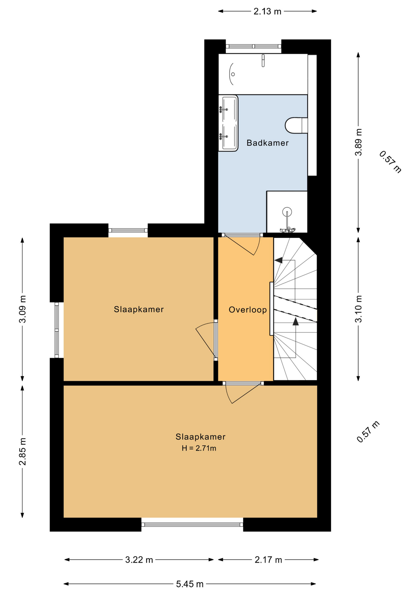 Overloop met toegang tot 2 ruime slaapkamers (ca. 16 en 10 m2), waarbij de ouderslaapkamer over de volle breedte van de woning. De badkamer (2022) is een echte eyecatcher en is uitgevoerd met een ligbad/whirlpool (met tv scherm), een inloopdouche, 2e toilet, wastafelmeubel met een dubbele wastafel, vloerverwarming en een raam voor de natuurlijke ventilatie. De verdieping is voorzien van een laminaatvloer.