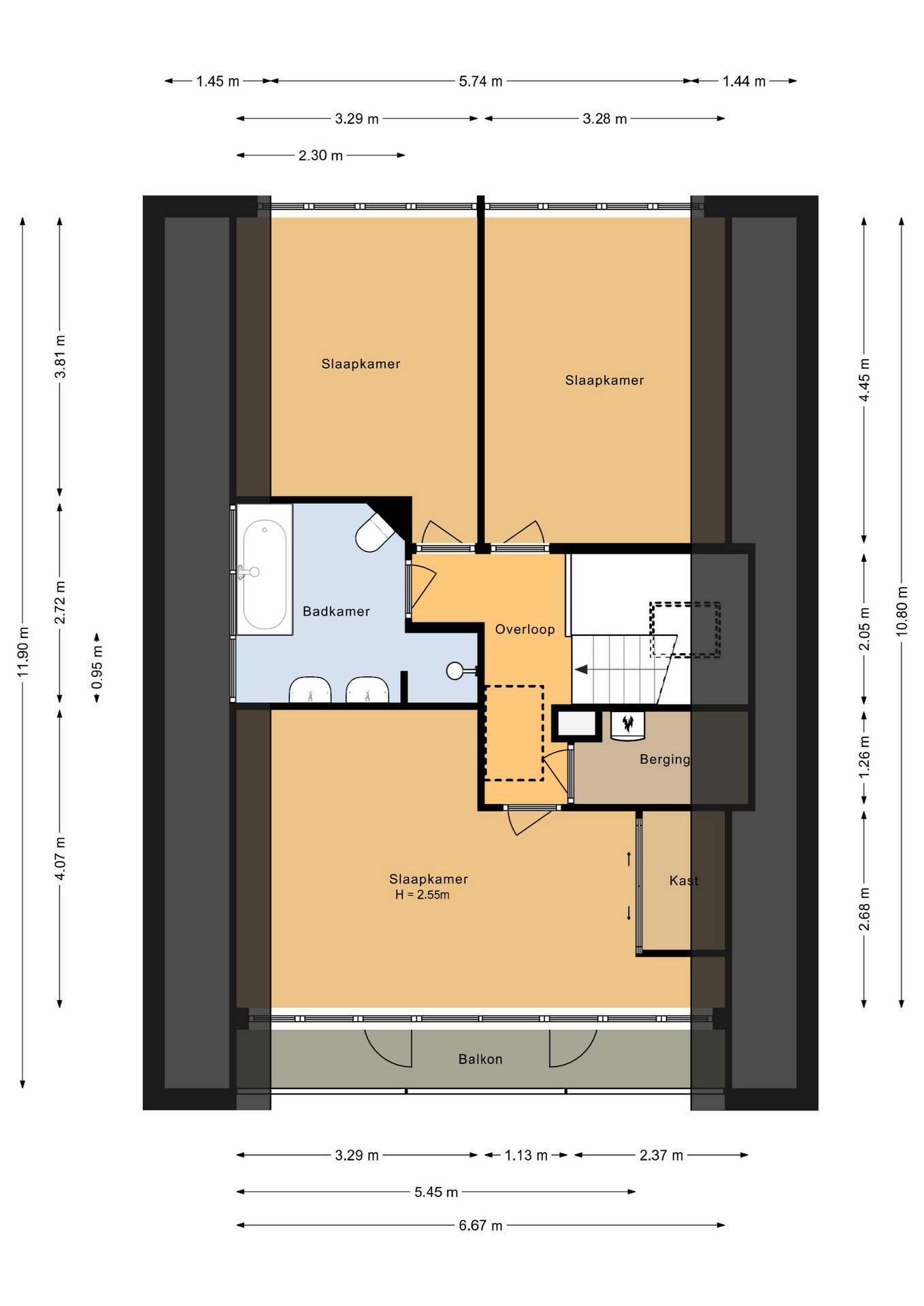 Via de overloop te bereiken bergvliering met veel praktische bergruimte.