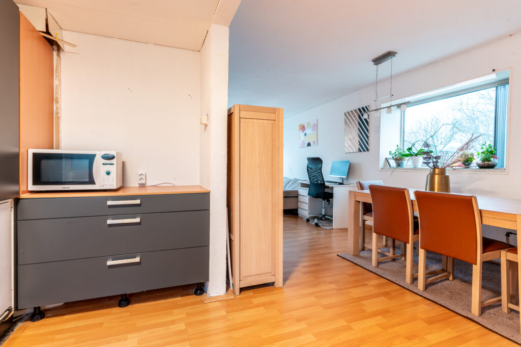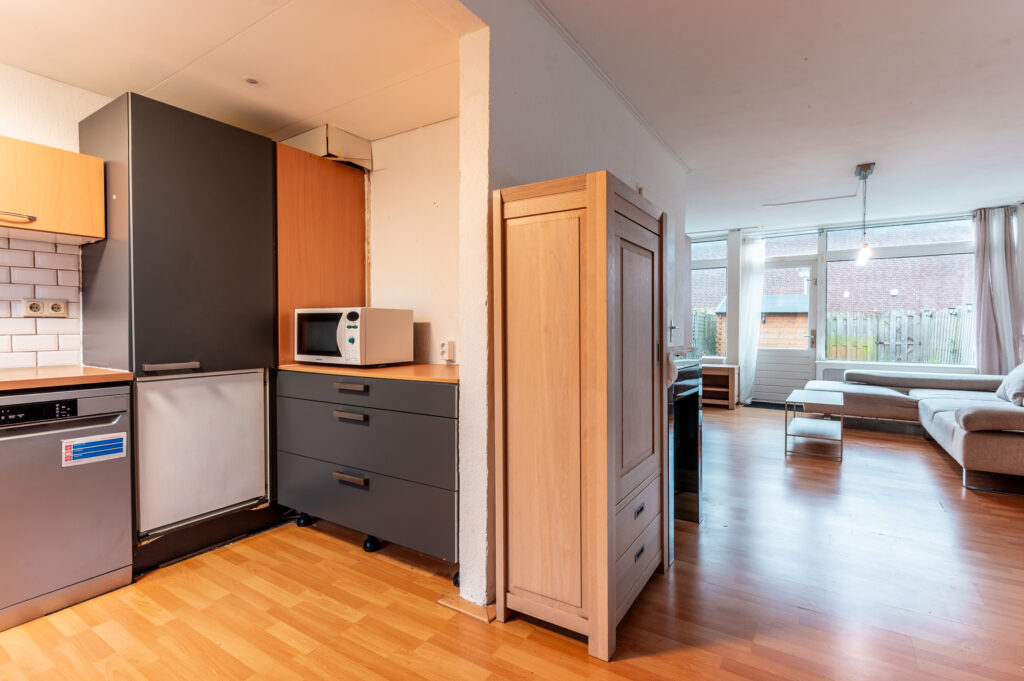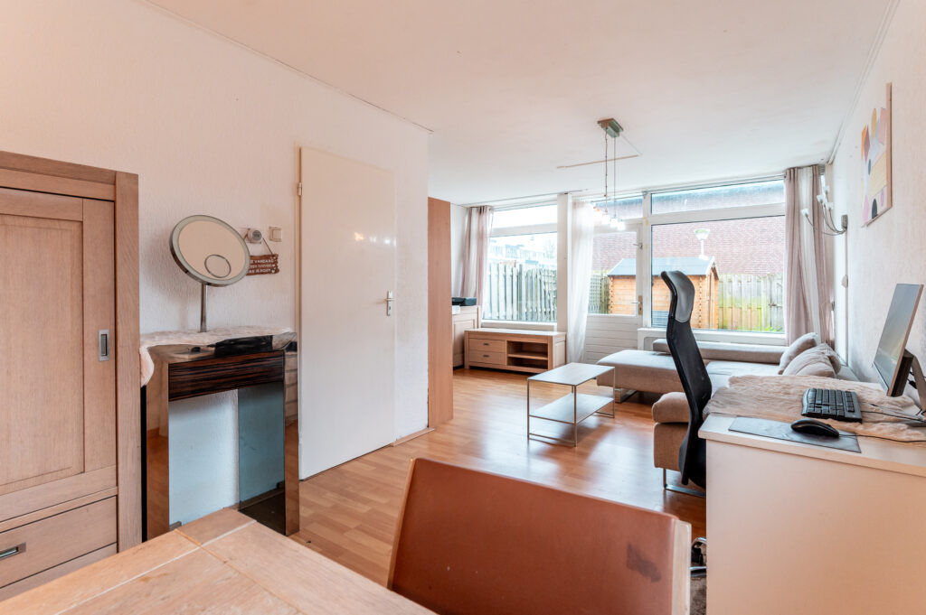 De woning behoeft modernisatie, maar vormt juist daardoor een uitstekende kans voor wie graag een huis volledig naar eigen wens wil afwerken en inrichten.