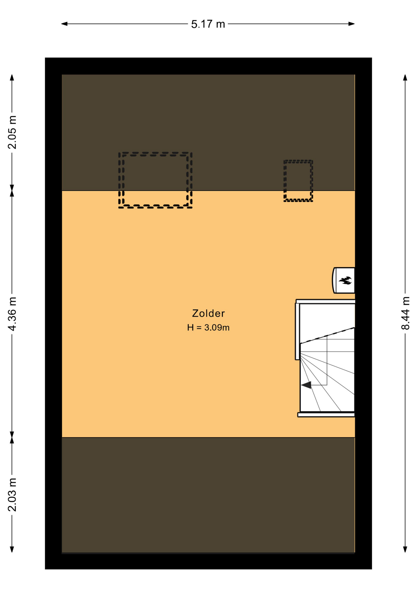 Slaapkamer 4 (ca. 23 m²) voorzien van dakraam, opstelling CV-ketel.